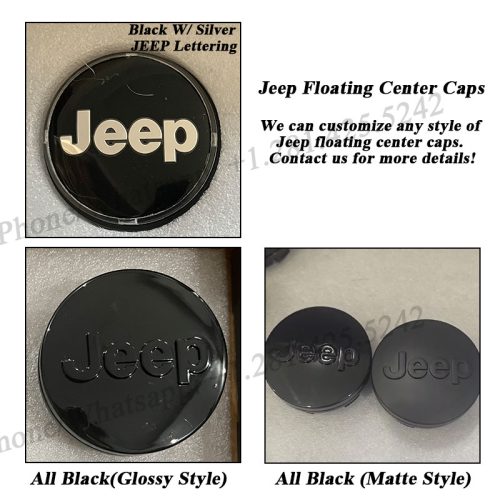 Custom Jeep Floating Center Caps 63mm (Silver Letter/All Black)